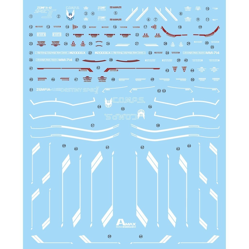 Amax HG 1/144 destiny type MR FLUO water slide decal AMAXHGMR005