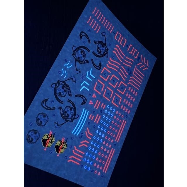 The decal will appear fluorescent effect when it is irradiated by a 365nm UV lamp.