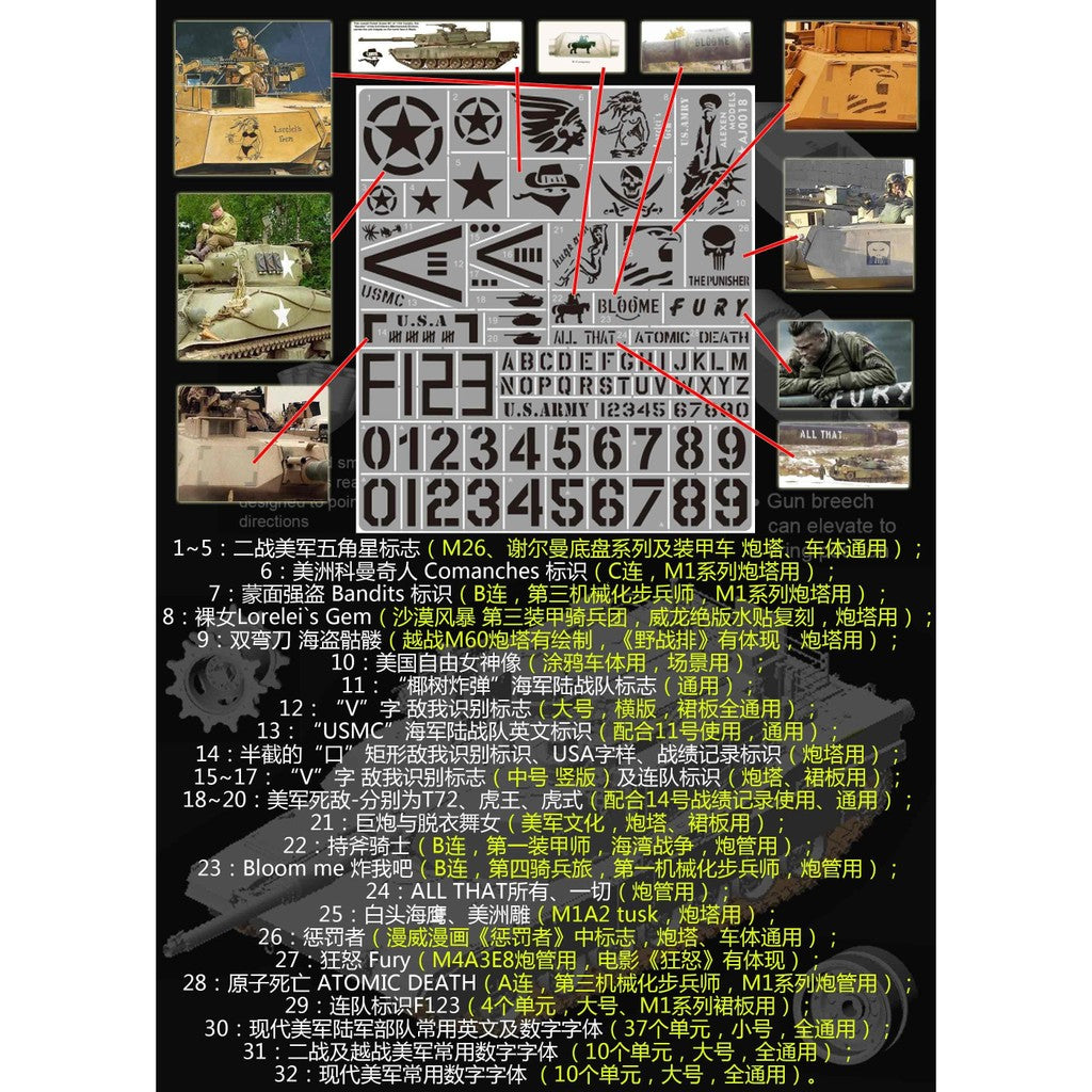 Alexen AJ0018 Hollow Out Stencil Tools for WW2 Tank / Modern Vehicles Tools